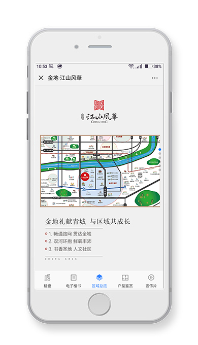 金地·江山风华微楼书,是房地产微网站平台,用户可以直接在金地·江山风华房地产公众号进入微楼书界面,查看企业介绍、楼盘介绍、户型介绍、楼盘导航、观看宣传片等,呼搜网从策划到开发上线全程提供服务。