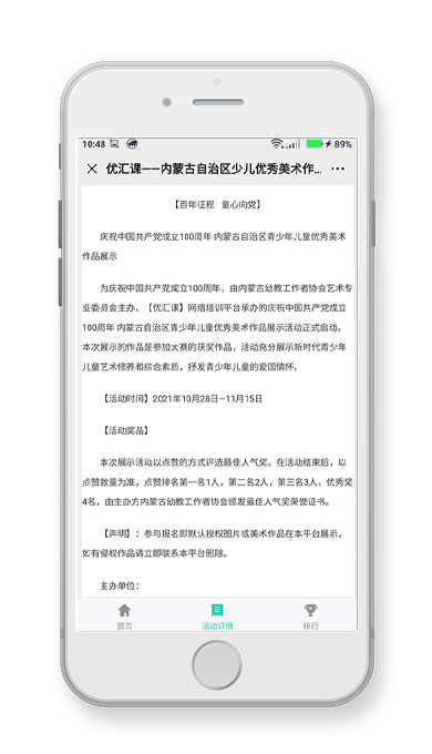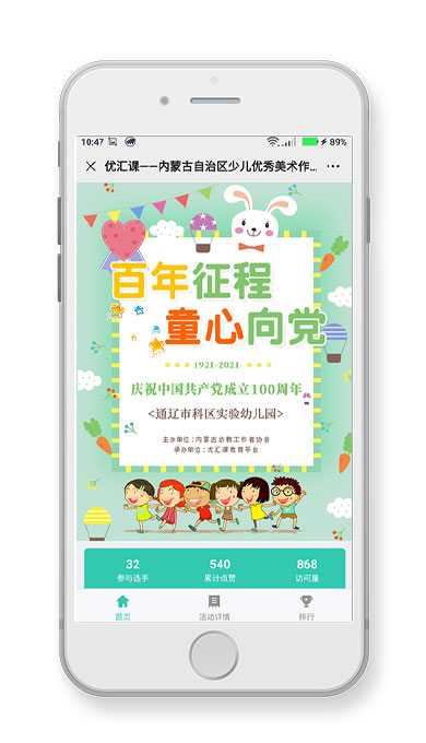 为庆祝中国共产党成立100周年,由内蒙古幼教工作者协会艺术专业委员会主办、【优汇课】网络培训平台承办的庆祝中国共产党成立100周年 内蒙古自治区青少年儿童优秀美术作品展示活动正式启动。本次展示的作品是参加大赛的获奖作品,活动充分展示新时代青少年儿童艺术修养和综合素质,抒发青少年儿童的爱国情怀。